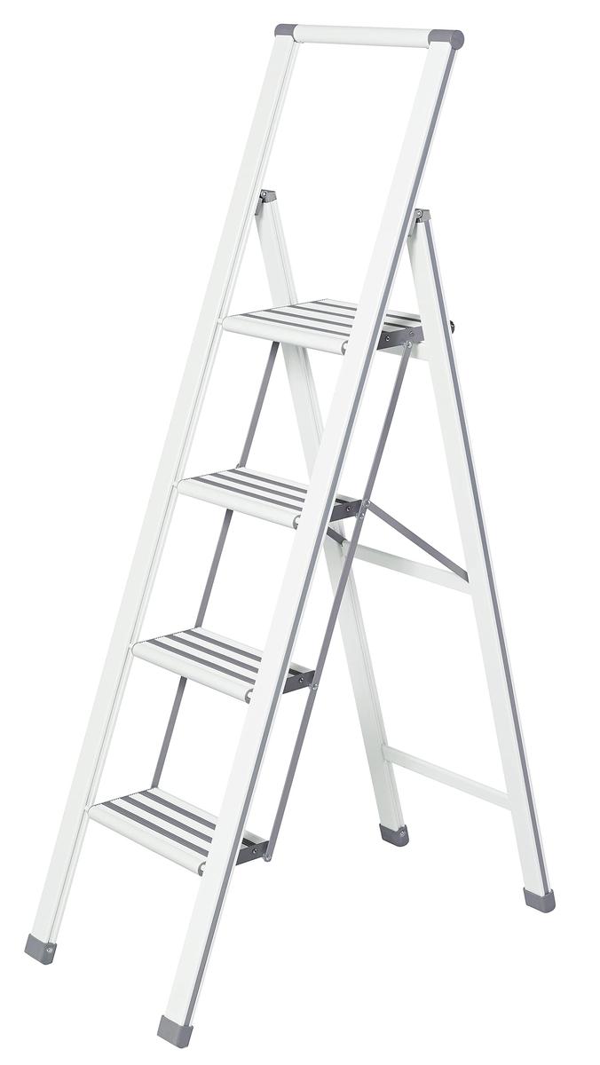 Wenko Household Ladder Aluminium Folding Ladder 4 Steps White and Grey
