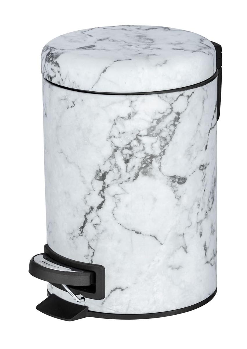 Useful waste bin with a hinged ONYX lid in a fashionable marble white-gray color. The bin has convenient dimensions and a capacity of 3 liters, making it suitable for various rooms. It is made of high-quality materials and is easy to clean and maintain. It is a product of a renowned German brand, WENKO.