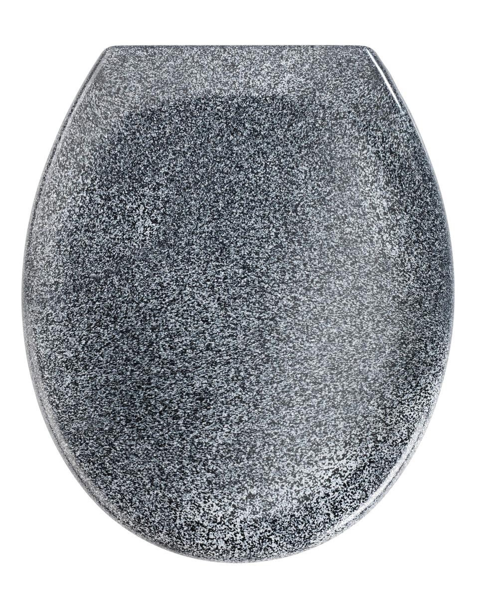 Ottana toilet seat with attractive granite graphic. Made of high-quality, durable and scratch-resistant thermosetting Duroplast material. Stainless steel hinges. Easy-Close mechanism ensures quiet and gentle closing. EU hygiene certified. German brand product by WENKO.