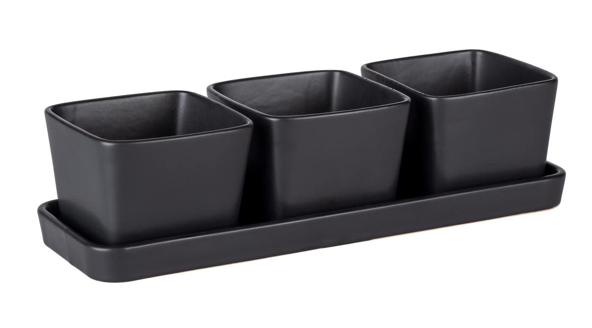Black Outdoor Kitchen serving dishes - a 4-piece set of snack bowls made of modern-looking ceramics. They can be used in the microwave and dishwasher. Perfect dimensions of the bowls and tray.