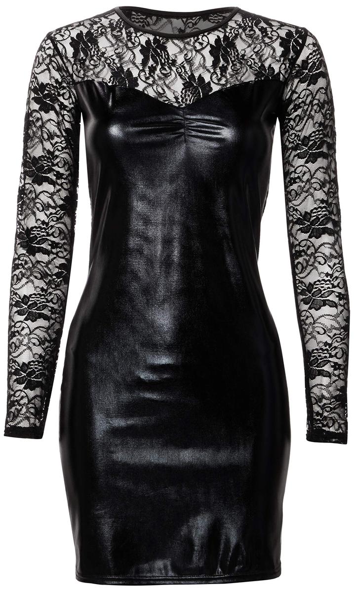 Wetlook Party Dress With Lace Accents