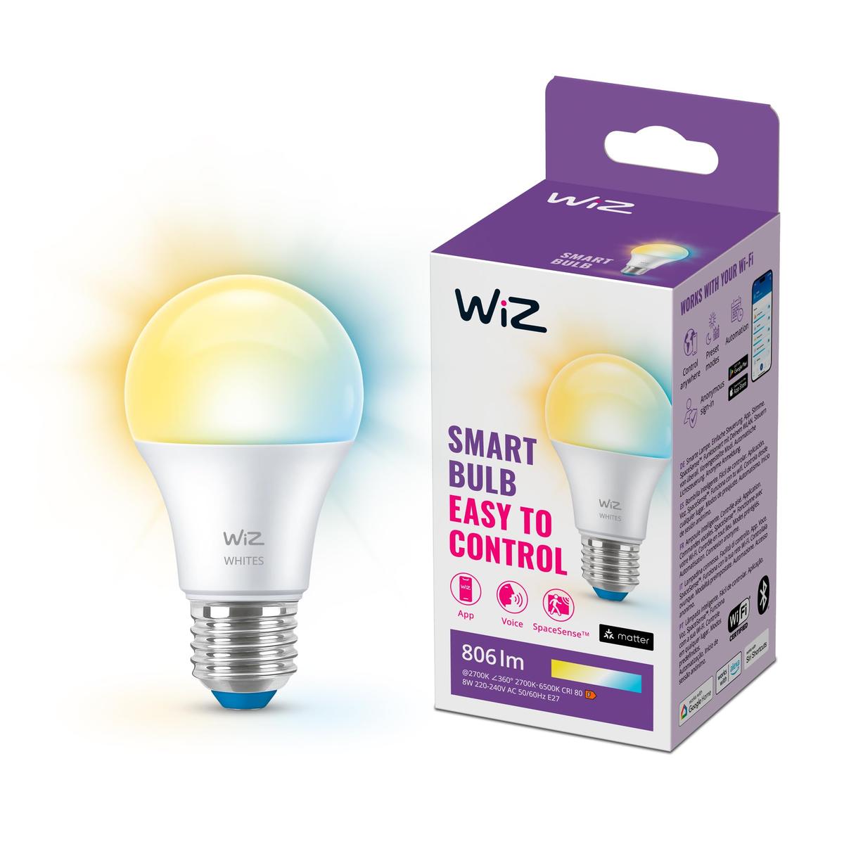 WiZ Bulb 60W A60 E27 Ρυθμιζόμενο Λευκό 2700K έως 6500K 806 Lumen