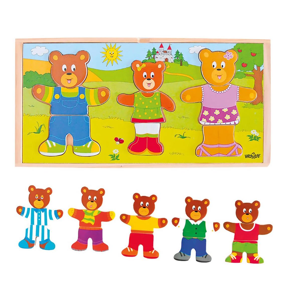 Woody Dress-Up Puzzle Bear Family Eco Wooden Educational Toy 54 Pieces