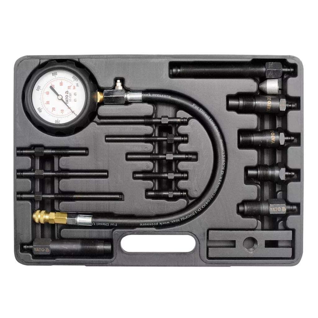 Yato YT-73072 Diesel Compression Pressure Gauge 1000 PSI 19 Piece Set