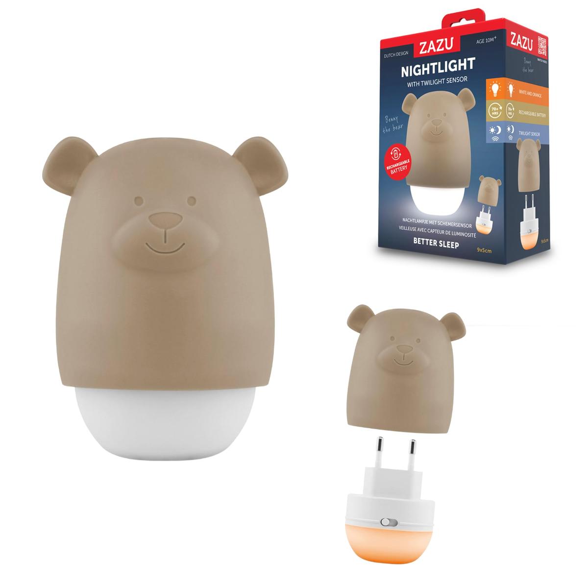 Zazu Benny Kids Night Light Rechargeable Twilight Sensor White and Orange Light Portable Taupe