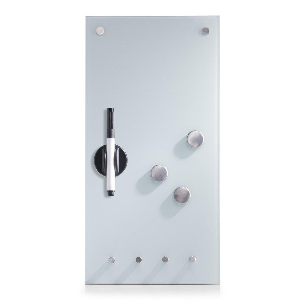 Zeller 11610 Magnetic Glass Memo Board 20 x 4 x 40 cm White With Hooks and Magnets