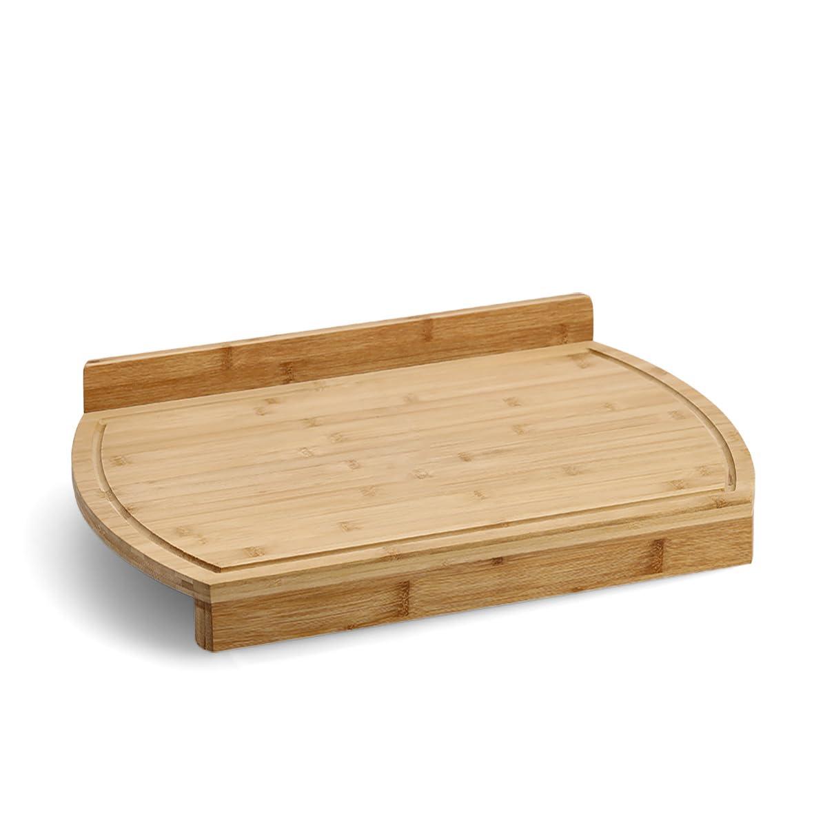High-quality, solidly made bamboo cutting board that is resistant to wear and tear, scratches, cracks, and water damage. It is easy to clean and dries quickly. The board has a groove to collect liquids and prevents food from falling off. It can also be used as a pastry board. Made from durable bamboo wood, it is moisture-resistant, strong, and safe for food. It is a space-saving, German-made product from the ZELLER brand.