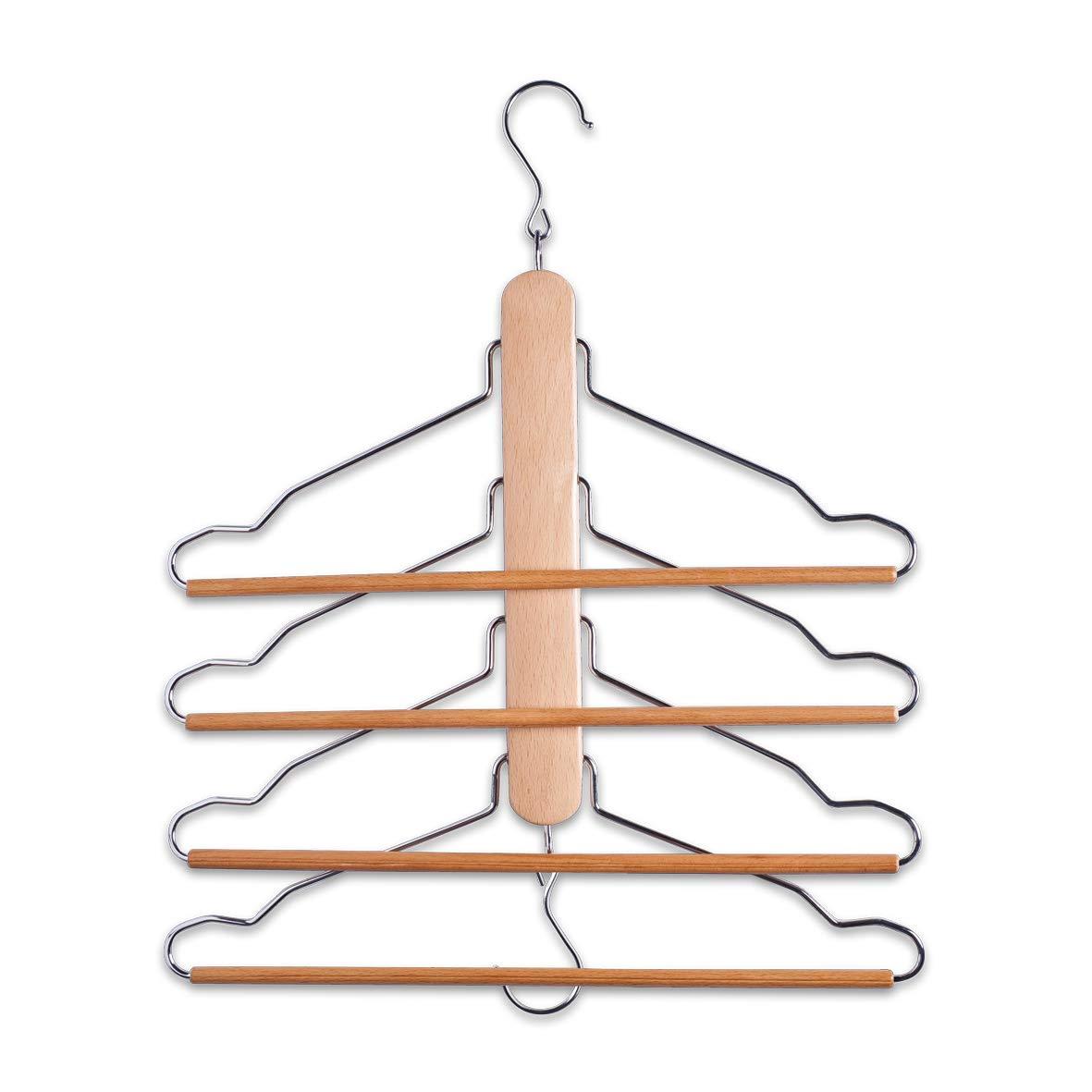Practical clothing storage handle with 4 hangers and a hook for hanging. Helps maintain order in the closet and prevents clothes from wrinkling. Allows for quick and convenient access to the contents. Takes up little space. Product features: practical pants organizer, convenient storage, easy access to clothing, simple assembly and disassembly, stable metal construction, product from German company ZELLER.